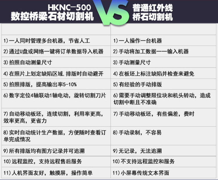 五轴数控桥切机:拍照定位优化排版,带触摸屏的顶级数控系统,激光标线装置。