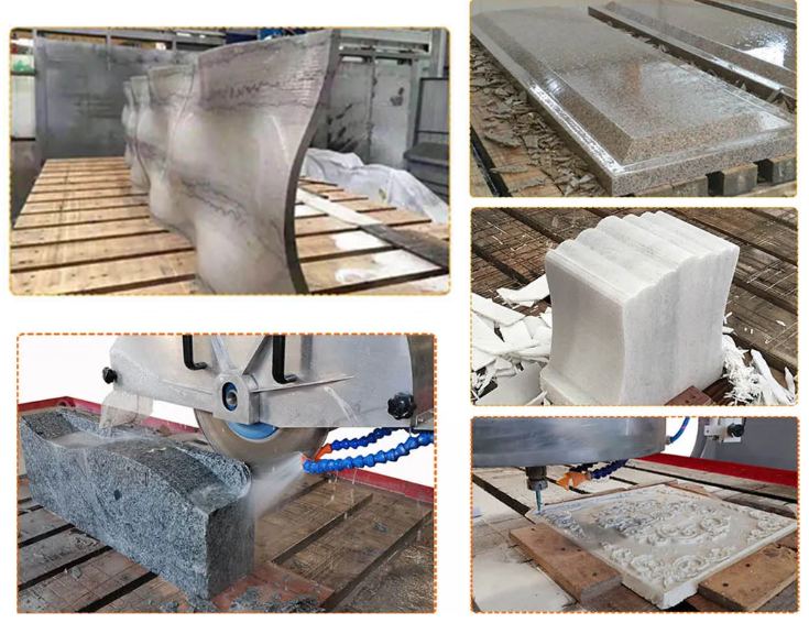 HKNC-825: 具有五轴联动控制,可实现不同复杂曲面的加工、仿形,如厨房台面、浴室梳妆台台面、墓碑、艺术装饰板材&岩石雕塑等...